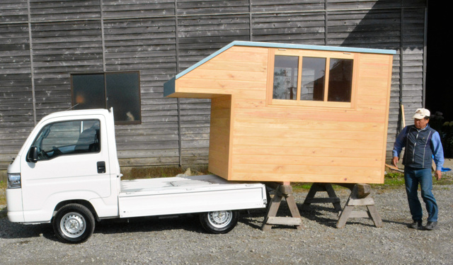 | こちらも熊日の写真を拝借。どうよ、この「軽トラハウス」! これがあれば、中で着替えができて野外イベントも楽ちーん! かな!? |